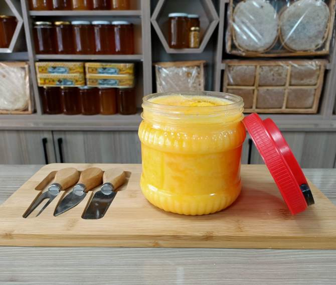 kaymak gibi ürünlerin eritilmesiyle ortaya çıkan Kars sarıyağ (sade yağ)